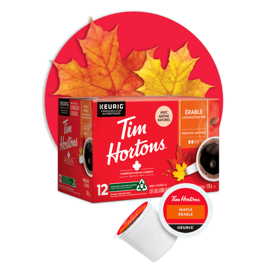 Si vous recherchez une torréfaction moyenne avec une subtile saveur sucrée, le café Tim Hortons® à saveur d’érable satisfera votre envie. Le mélange aromatisé à l’érable de Tim Hortons® produit un café de torréfaction moyenne parfaitement équilibré, au goût d’érable légèrement sucré.