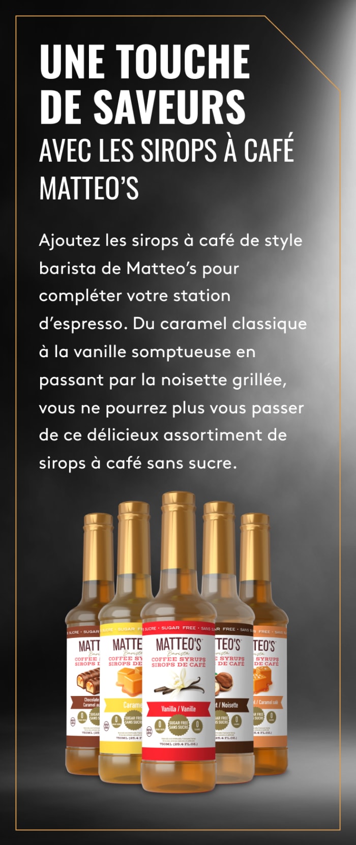 Le café ne devrait pas être la seule option pendant les pauses. Les chocolats chauds, mokaccinos crémeux et autres gâteries saisonnières offrent un moment de répit, de plaisir et de partage. Offrir plus de variété montre à votre équipe que vous vous souciez d’elle, et transforme la salle de pause en un espace qu’elle apprécie vraiment.
