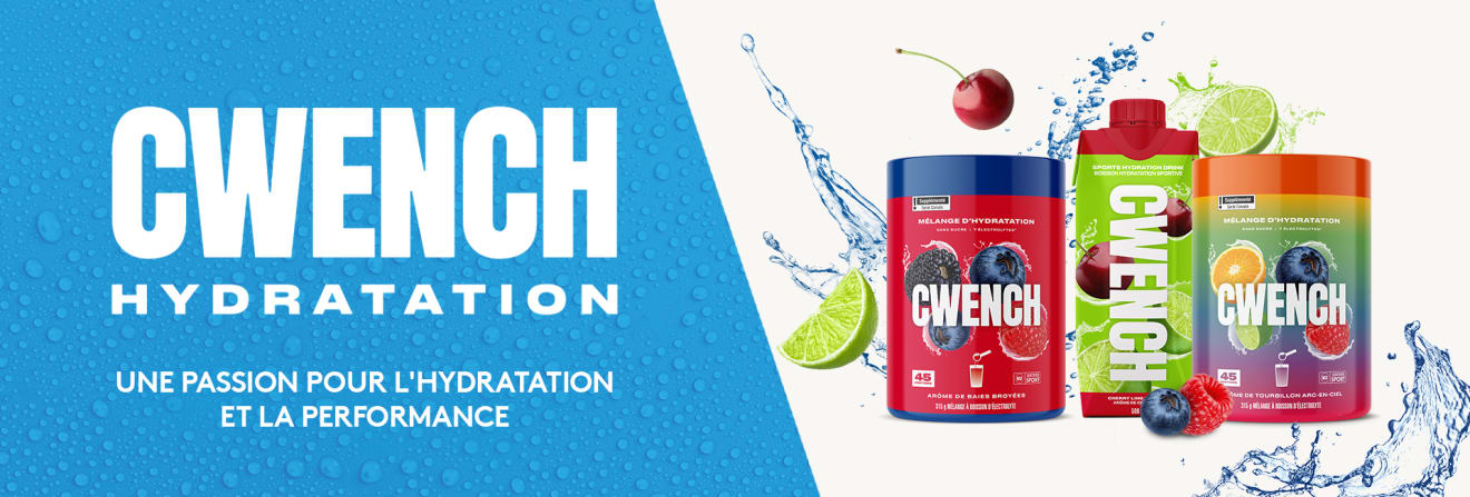 Avec sa sélection de mélanges et de boissons sportives, CWENCH Hydration s’est donné pour mission de vous aider à rester hydraté toute la journée. Cette solution d’hydratation santé est scientifiquement formulée pour vous aider à vous hydrater sans interruption, que vous soyez au bureau, en session d’étude ou au gym.