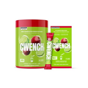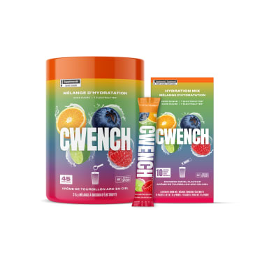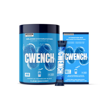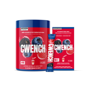 CWENCH Hydration propose quatre saveurs savoureuses : Baies, framboise bleue, cerise et lime, et arc-en-ciel. Découvrez toutes les saveurs de cette solution d’hydratation nutritive conçue pour vous aider à demeurer en excellente forme…et bien performer au travail! Sans sucre, avec des électrolytes énergisants et sans arômes/couleurs artificiels; l’hydratation n’a jamais eu aussi bon goût.