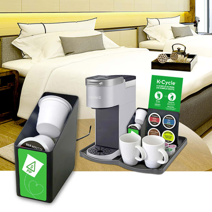 N’est-il pas agréable de pouvoir déposer ses bagages, enlever ses chaussures et se préparer une délicieuse tasse de café en appuyant sur un bouton dès que l’on entre dans sa chambre d’hôtel? Avec l’aide des spécialistes des Services de Café Van Houtte, nous pouvons concevoir un service de café qui complète parfaitement les services de votre hôtel, bateau de croisière, compagnie aérienne ou site de divertissement. Nous proposons une large gamme de cafetières une tasse à la fois pour les comptoirs, conçues pour aider à réduire les déchets et assurer la satisfaction des clients. De plus, avec plus de 100 choix de boissons de grandes marques, vous êtes prêts pour vos besoins de traiteur maison, y compris les solutions de café pour les réunions de vos clients, le hall d’entrée et le menu du service aux chambres.